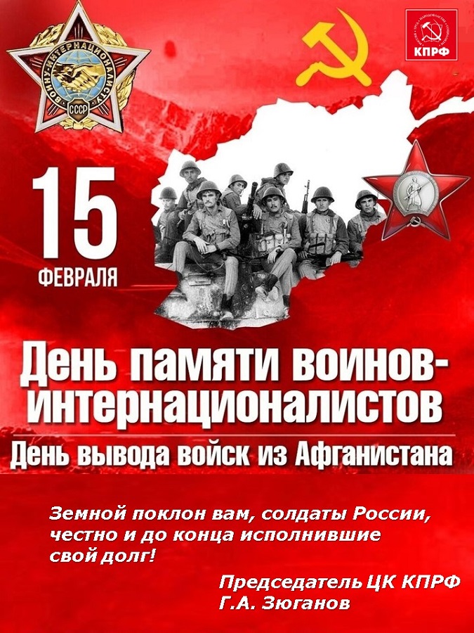 15 февраля - День памяти воинов-интернационалистов. Этот день выбран не случайно - 37 лет назад в 1989 году последняя колонна советских войск покинула территорию Афганистана. Памятная дата символизирует не только скорбь по погибшим, но и напоминает о героизме тех, кто в разные годы защищал интересы Отечества за его пределами.
