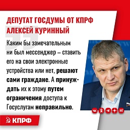 По словам парламентария, уже есть удобные идентификации: одноразовый пароль, направляемый пользователю в смс или на адрес электронной почты, указанный при регистрации, в придачу к персональным данным, которые вводятся при входе в личный кабинет. «Каким бы замечательным ни был мессенджер – ставить его на свои электронные устройства или нет, решают сами граждане. А принуждать их к этому путем ограничения доступа к Госуслугам неправильно. В качестве одного из вариантов идентификации пусть будет и мессенджер, но как удобная альтернатива, а не обязательное условие», - сказал Алексей Куринный. Законопроект КПРФ о праве граждан самим выбирать способ идентификации и аутентификации при обращении за предоставлением государственных и муниципальных ... Читать дальше »